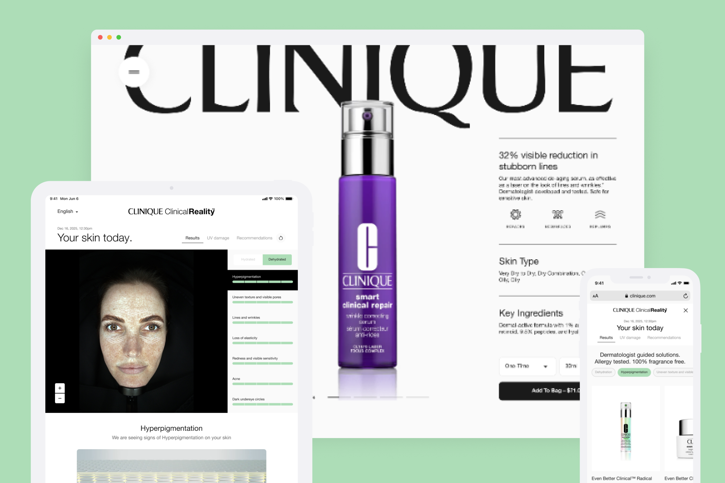 Engaged by Estée Lauder & Clinique to provide design support for their digital products including ecomm website, in-store AR products. More