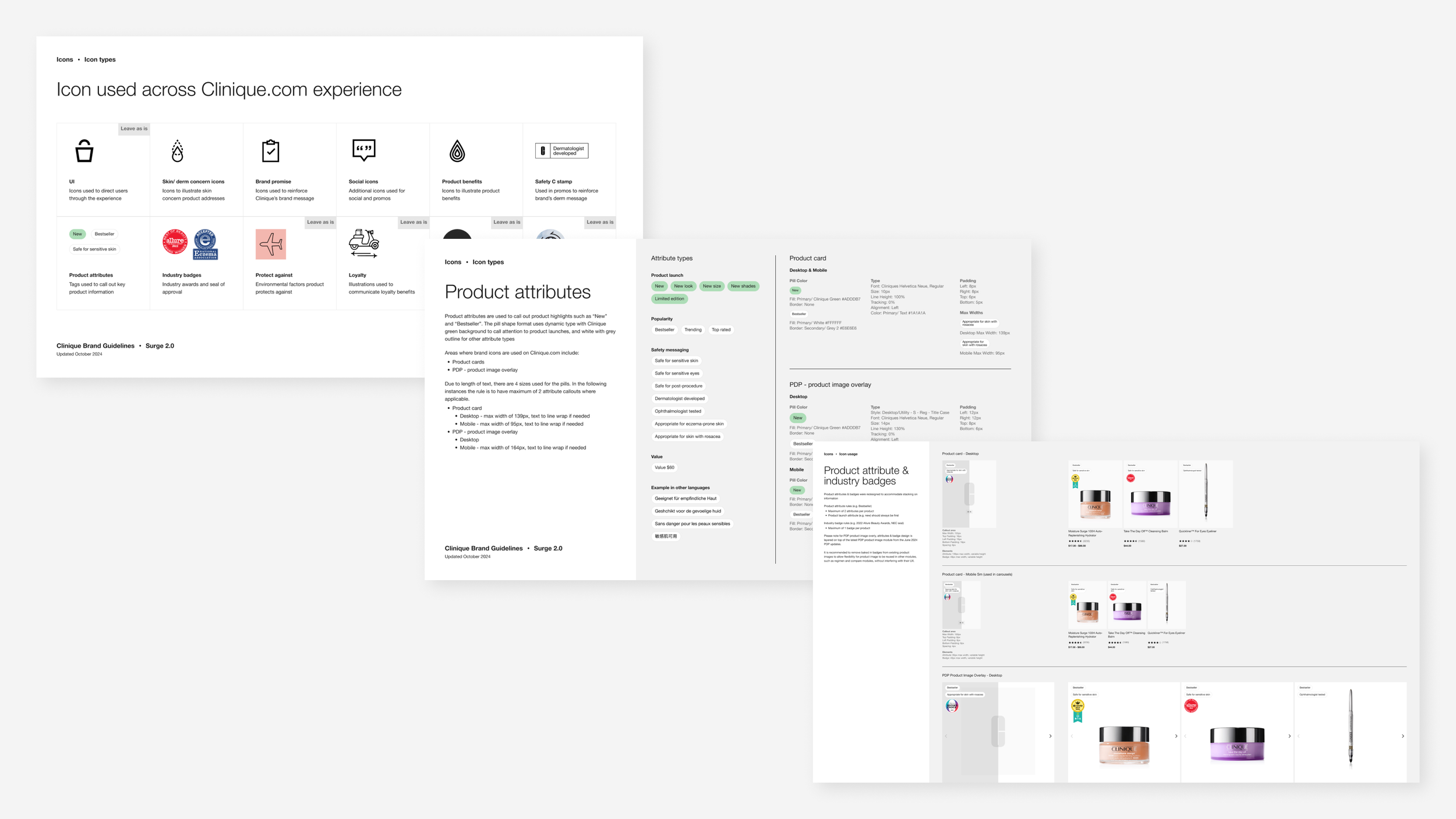Engaged by Clinique’s Global 360 Creative to audit existing icon usage and create a strategy for cohesive icon & badge usage to create rules around their application across Clinique’s website experience. Deliverables include stress testing icon recommendations on key pages, modules, and recommended rules for icon application.