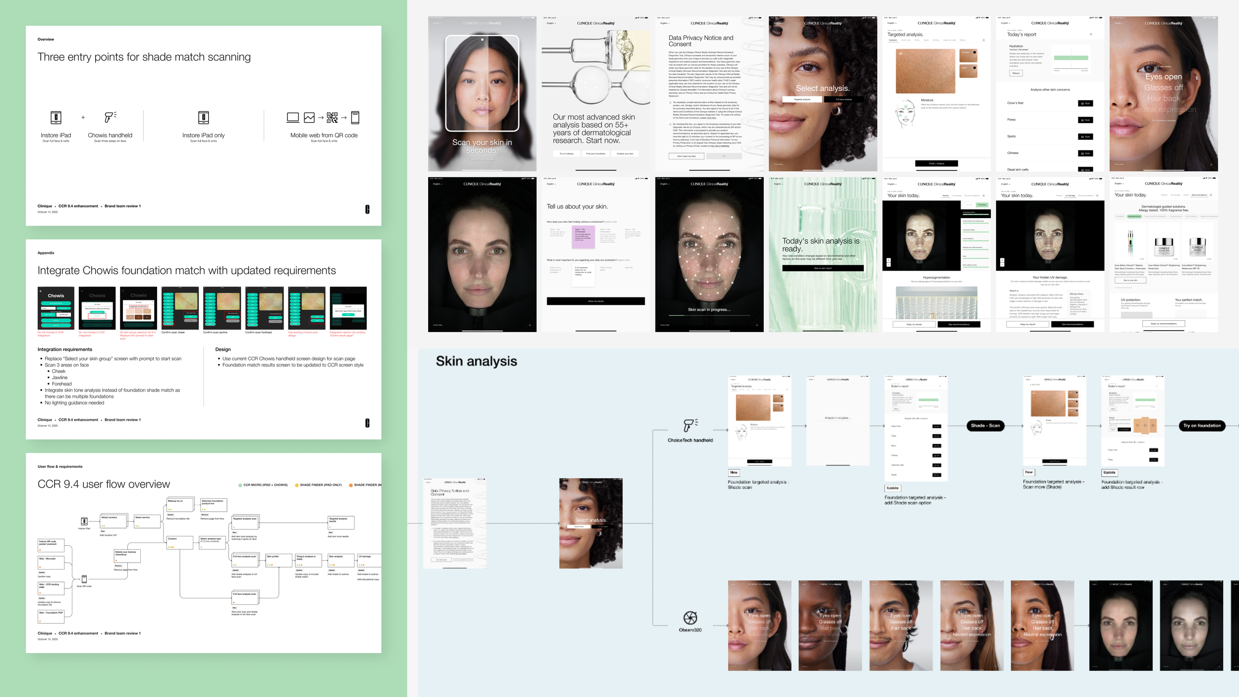 Engaged by Estée Lauder’s Brand Technology team on the design refresh of Clinique’s augmented reality product Clinique Clinical Reality. The assignment was to integrate new in-store scanning tools, and in 2025 foundation matching, into new user flows and experiences. In collaboration with Clinique brand & ecomm team, created new user flows, concepts, and designed new templates for in-store iPad, customer mobile web, and Clinique Clinical Reality web pages.
