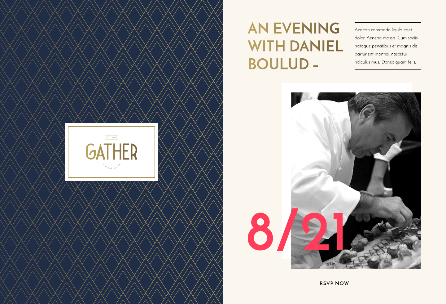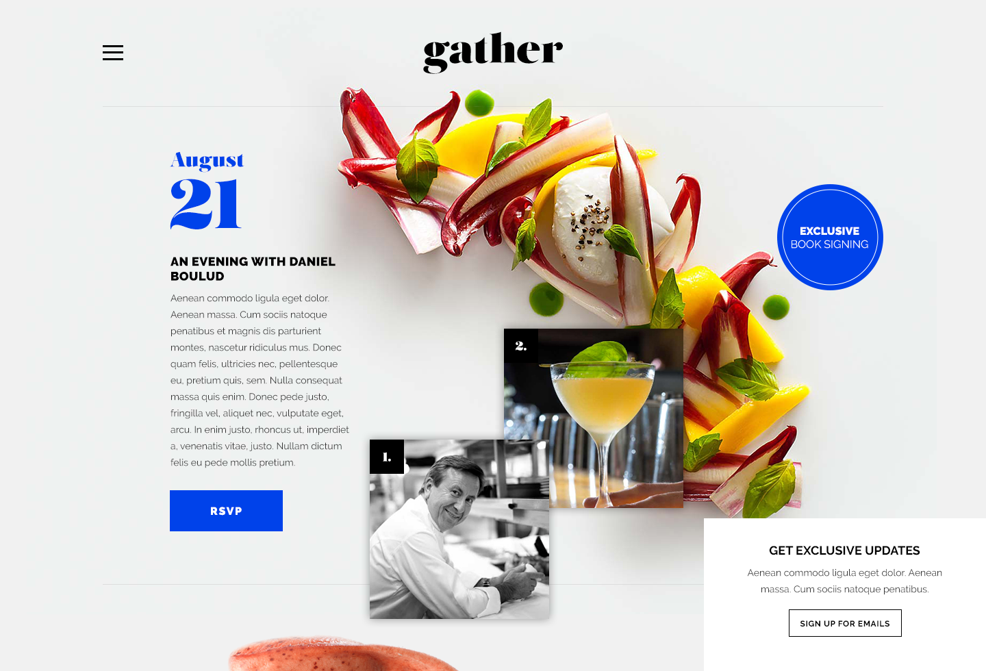 Based on the vision defined in strategy, designed concepts to express Gather's brand personality and convey quality, intimate, bespoke, memorable, and exclusive. In addition to logo and visual identity design, created user flow and site structure to satisfy Gather's business needs at launch.