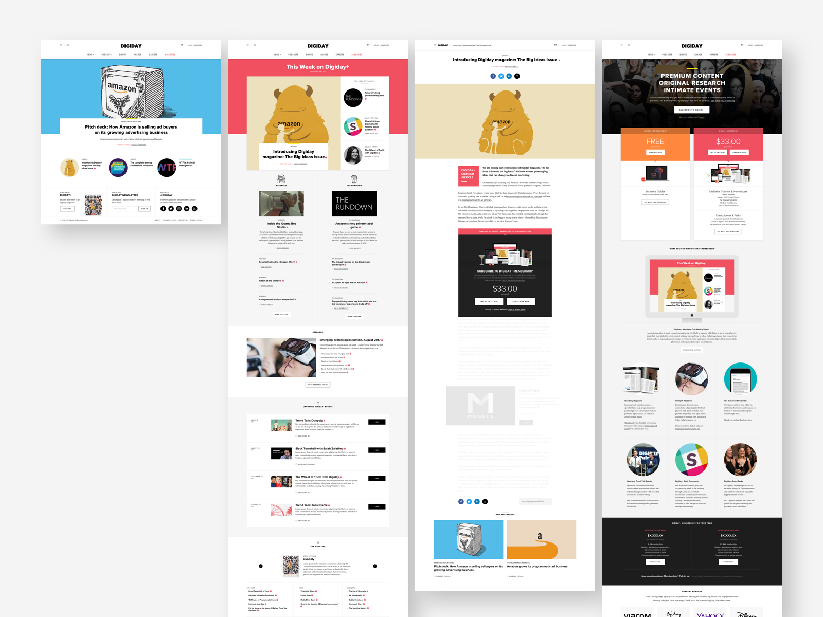 Over the years, Studio Chow has engaged with Digiday's CEO & editor-in-chief at key moments of its business transformation to evolve its brand strategy, architecture, and website experience. This included brand & website audit (2015), brand architecture & responsive website design (2016), membership experience integration (2017).