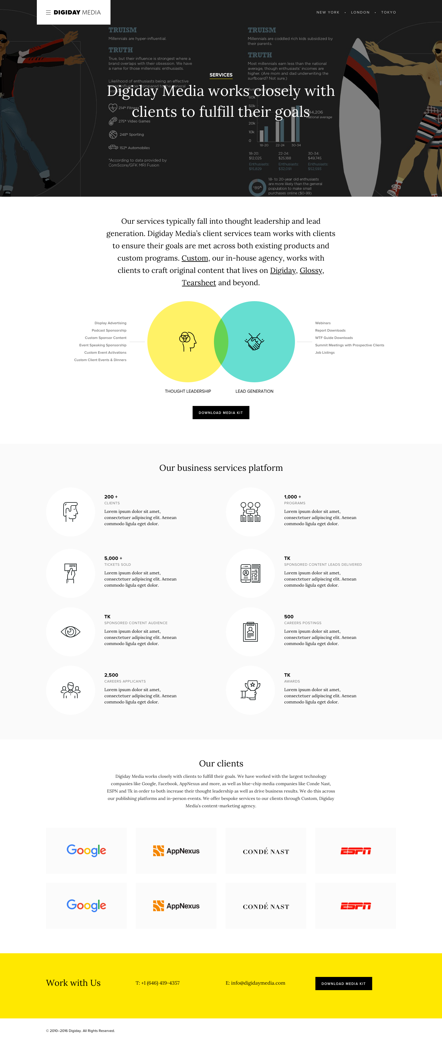 Engaged by Digiday Media to create a B2B website to house their growing suite of brands and tell Digiday Media’s story to potential partners and advertiser.