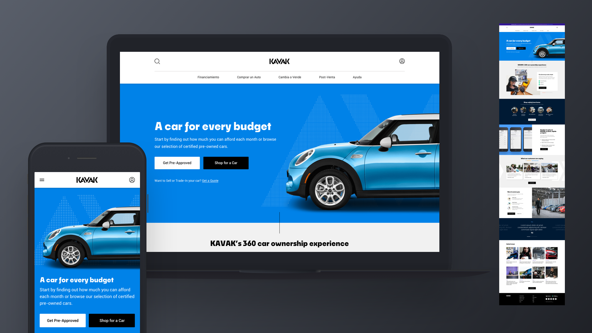 Responsive web homepage design to clearly community KAVAK’s value proposition